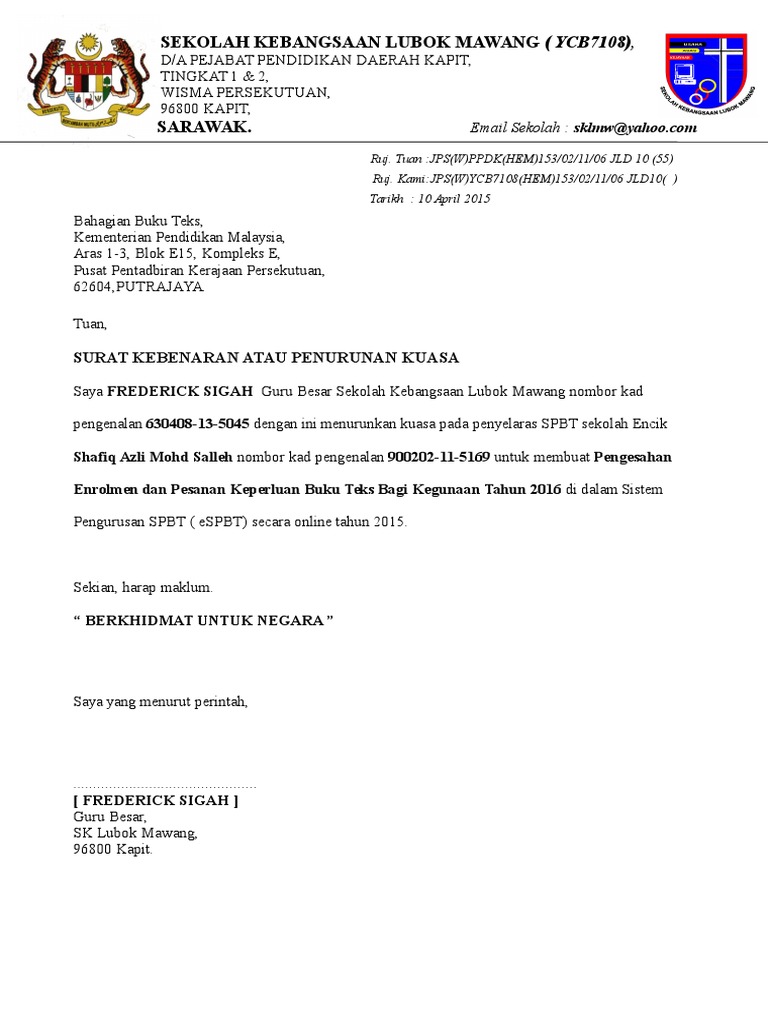 Contoh Surat Sokongan Ketua Jabatan Letter 7saudara Com
